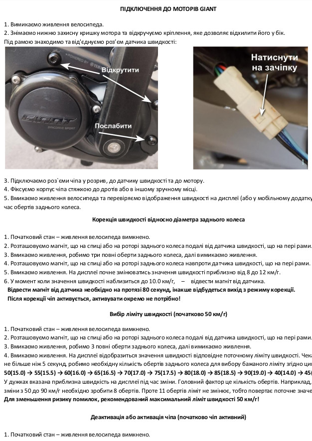 Інструкції з підключення чіпів зняття обмеження швидкості до електровелосипедів